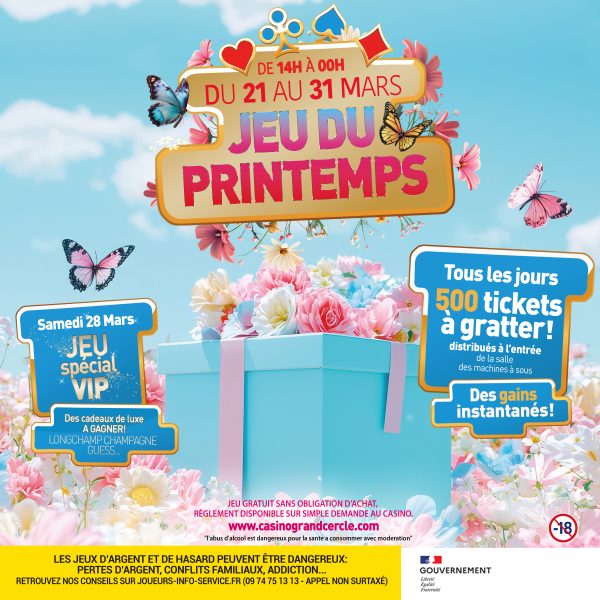 ➜ Les jeux d’argent et de hasard peuvent être dangereux : pertes d’argent, conflits familiaux, addiction... Retrouvez nos conseils sur joueurs-info-service.fr (09 74 75 13 13 – appel non surtaxé)